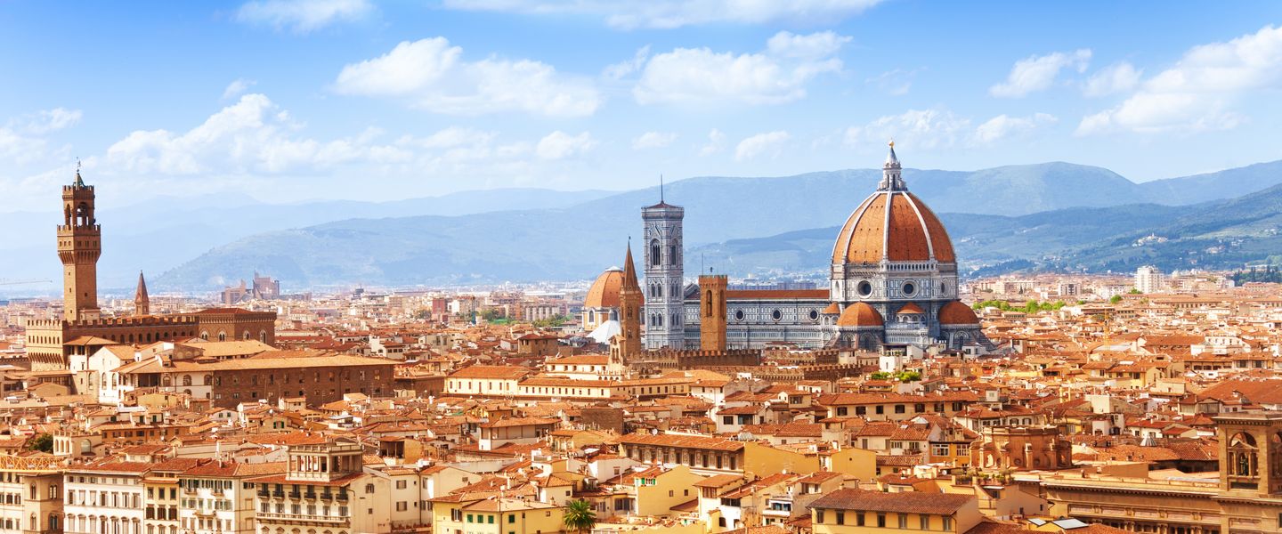 Florenz ist die Hauptstadt der Toskana in Italien und gilt als eine der bedeutendsten Städte der Kunst und Kultur weltweit. Die Stadt liegt im zentralen Teil Italiens und ist berühmt für ihre Rolle als Wiege der Renaissance, einer kulturellen Bewegung, die im 14. Jahrhundert begann und die Kunst, Wissenschaft und Philosophie revolutionierte. Florenz ist bekannt für seine beeindruckende Architektur, darunter die Kathedrale Santa Maria del Fiore mit ihrer markanten Kuppel von Filippo Brunelleschi, sowie für bedeutende Kunstwerke von Meistern wie Michelangelo, Botticelli und Leonardo da Vinci. Die Stadt hat eine reiche Geschichte, die bis in die römische Zeit zurückreicht, und war im Mittelalter ein wichtiges Handels- und Finanzzentrum.