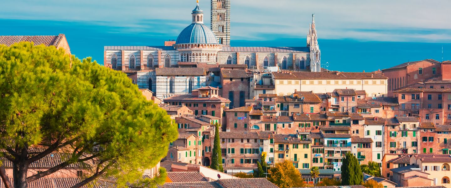 Siena ist eine historische Stadt in Italien, die in der Region Toskana liegt. Sie befindet sich etwa 70 Kilometer südlich von Florenz und ist bekannt für ihre gut erhaltene mittelalterliche Architektur und ihre reiche Geschichte. Siena ist berühmt für das Palio, ein traditionelles Pferderennen, das zweimal jährlich auf der Piazza del Campo stattfindet und eine der ältesten und aufregendsten Traditionen Italiens darstellt. Die Stadt hat eine lange Geschichte, die bis in die Etruskerzeit zurückreicht, und erlebte im Mittelalter eine Blütezeit, als sie zu einer der bedeutendsten Städte der Toskana wurde. Siena war ein wichtiges Zentrum für Kunst, Handel und Politik und ist heute ein UNESCO-Weltkulturerbe.