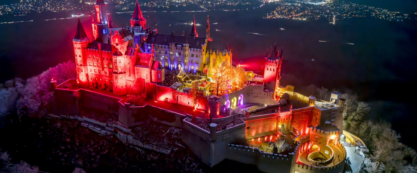 Dann folgen Sie uns auf die Burg Hohenzollern bei Hechingen, wo mit aufwändigen Dekorationen in den königlichen Gemächern und großflächigen Illuminationen im Außenbereich der Burg eine ganz besondere Atmosphäre geschaffen wird. Nach der Ankunft begeben Sie sich auf Entdeckungsreise durch die herrlich dekorierten Innenräume. Nach Einbruch der Dunkelheit verzaubern glitzernde und farbenfrohe Beleuchtungen die Burgmauern – kuriose Burg-Anekdoten und interessante Geschichten werden von besinnlichen Klängen untermalt. Für den kleinen Hunger bieten die Buden im Burghof etwas auf die Hand, bevor es zurück nach Hause geht.