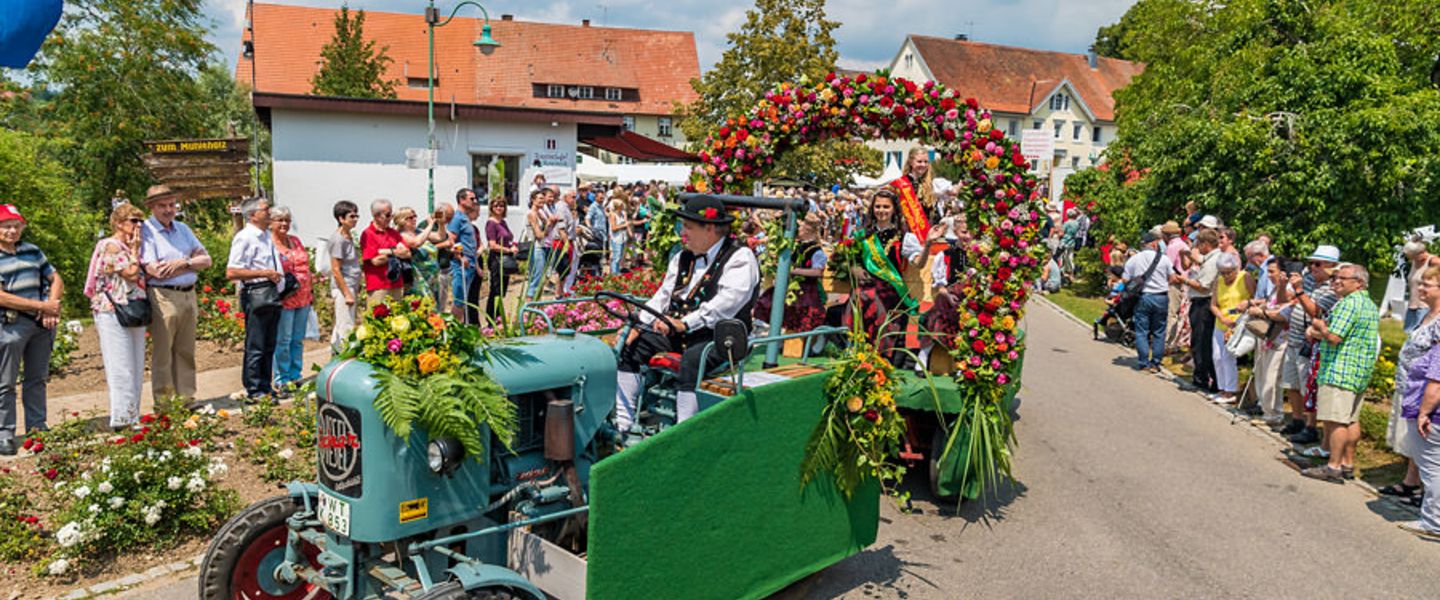 Über die A8 und A81 fahren wir nach Nöggenschwiel. Das idyllische Rosendorf im Naturpark Südschwarzwald steht ganz im Zeichen der Rose und begeistert jährlich mit Festumzug, Rosenmarkt sowie vielfältigen Unterhaltungsangeboten für Familien, Kinder und Senioren. Zahlreiche Rosenanlagen prägen das Ortsbild – schon bei der Ankunft empfängt Sie eine farbenfrohe Blütenpracht.
